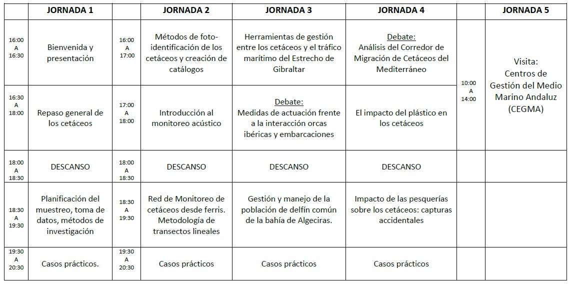 El seminario cuenta, además, con una visita al Centro de Gestión del Medio Marino Andaluz (CEGMA) en Algeciras. Esta jornada se llevará a cabo el 27de febrero de 2026. Tuvo que ser aplazada el día 13 de febrero por las inclemencias meteorológicas.
